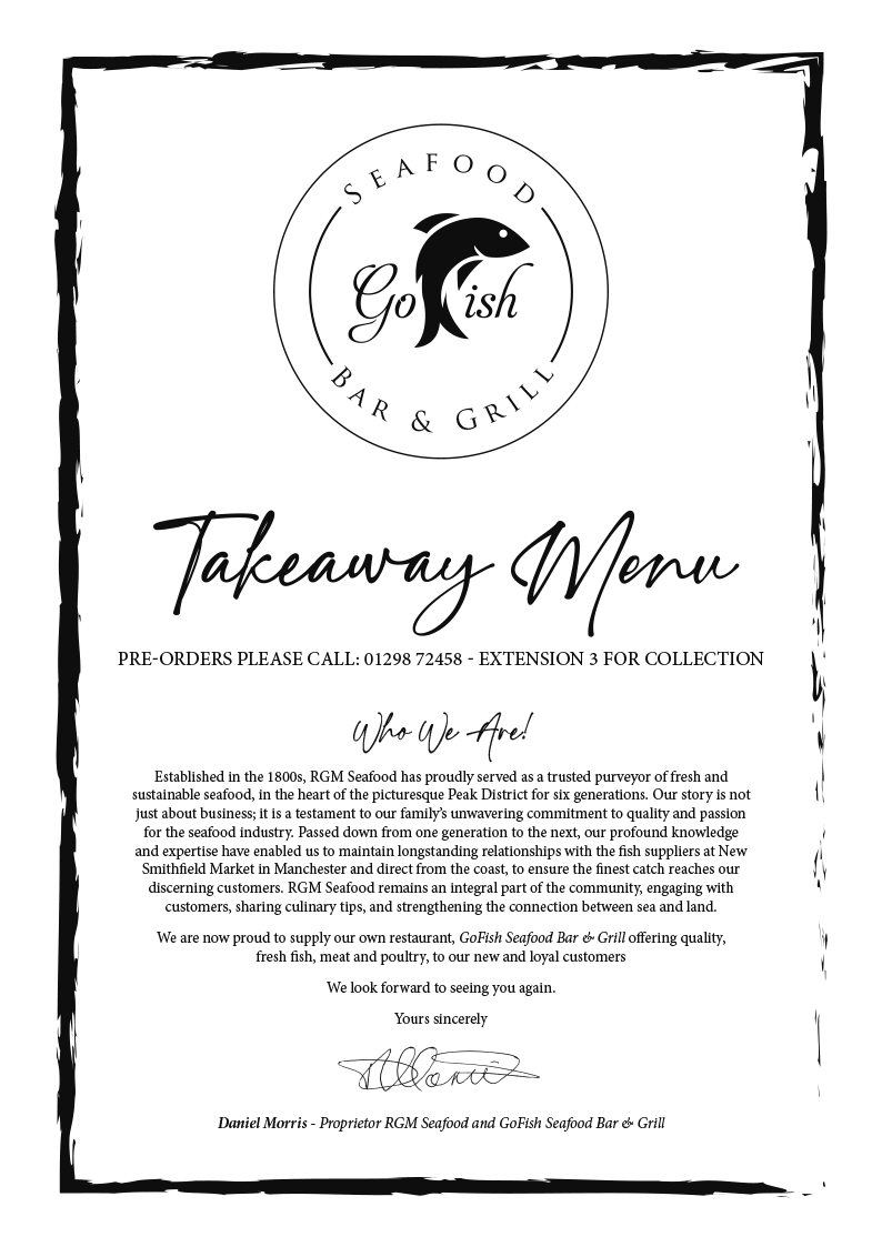 All of our fish is fresh and sustainably sourced by our sister company, RGM Seafood. We use potatoes grown and supplied by Mosleys in Wormhill, Buxton.